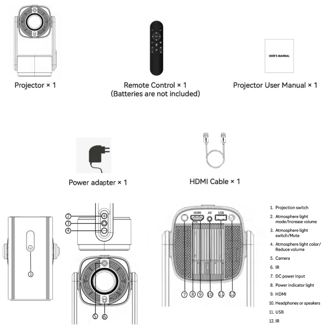 Experience the freedom of streaming your favorite content in any room of your home, at any time that suits you. Our portable projector features a 180° rotating design, allowing you to point and stream from any angle, whether it's the ceiling or the wall. Perfect for the living room, bedroom, theater room, outdoors, or any space in need of a quick and easy home theater upgrade.
